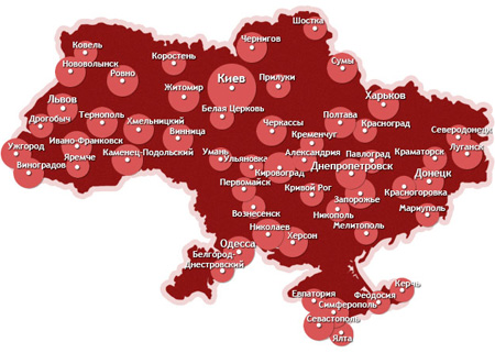 Покрытие по территории Украины радиостанции Хіт FM: 57 передатчиков, 138 городов в зоне уверенного приема.